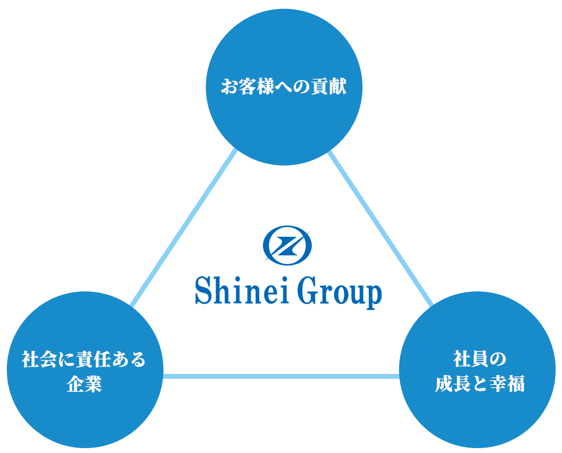 以上の価値観を基盤として、神栄グループはお客様と社会に貢献し、社員の成長と幸福を追求することで、健全な企業活動を行い、社会の発展に貢献することを目指しています。